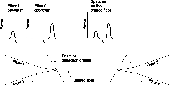 For fiber optic channels, a variation of frequency division multiplexing called Wavelength Division Multiplexing (WDM) is used (Fig. 2-25).
