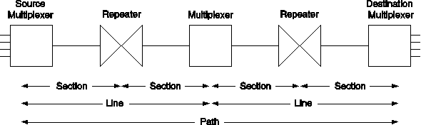 A SONET system consists of switches, multiplexers, and repeaters, all connected by fiber (Fig. 2-29). SONET terminology: