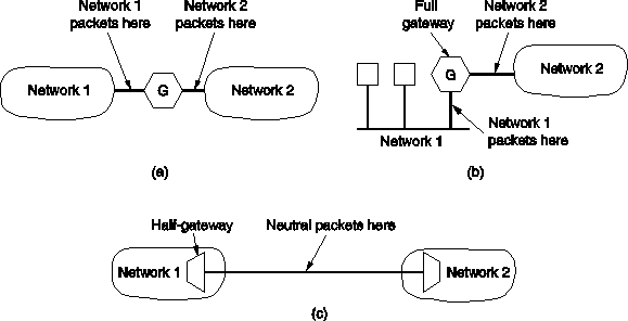 A gateway can be ripped apart in the middle and the two parts connected by a wire. Each of the halves is called a half-gateway (Fig. 5-34).