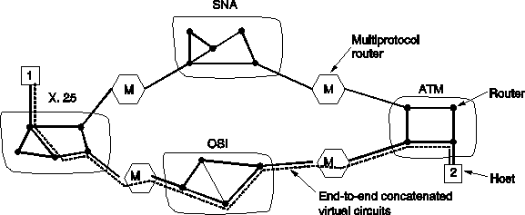 Fig. 5-36. Internetworking using concatenated virtual circuits.