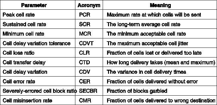 To make it possible to have concrete traffic contracts, the ATM standard defines a number of QoS (Quality of Service) parameters whose values the customer and carrier can negotiate. The most important ones are the following: