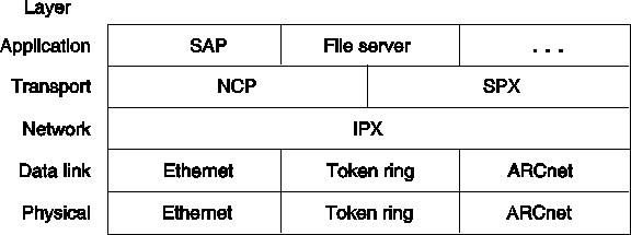 NetWare uses a proprietary protocol stack (Fig. 1-22). It looks more like TCP/IP than like OSI.