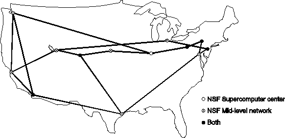 NSF also funded about 20 regional networks that connected to the backbone to allow users at thousands of universities, research labs, libraries, and museums to access any of the computers and to communicate with one another. The complete network, including the backbone and the regional networks, was called NSFNET. It was connected to the ARPANET through a link in the Carnegie-Mellon machine room (Fig. 1-26).