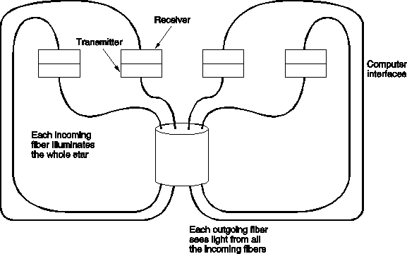 Fig. 2-10. A passive star connection in a fiber optics network.