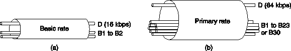 Fig. 2-42. (a) Basic rate digital pipe. (b) Primary rate digital pipe.